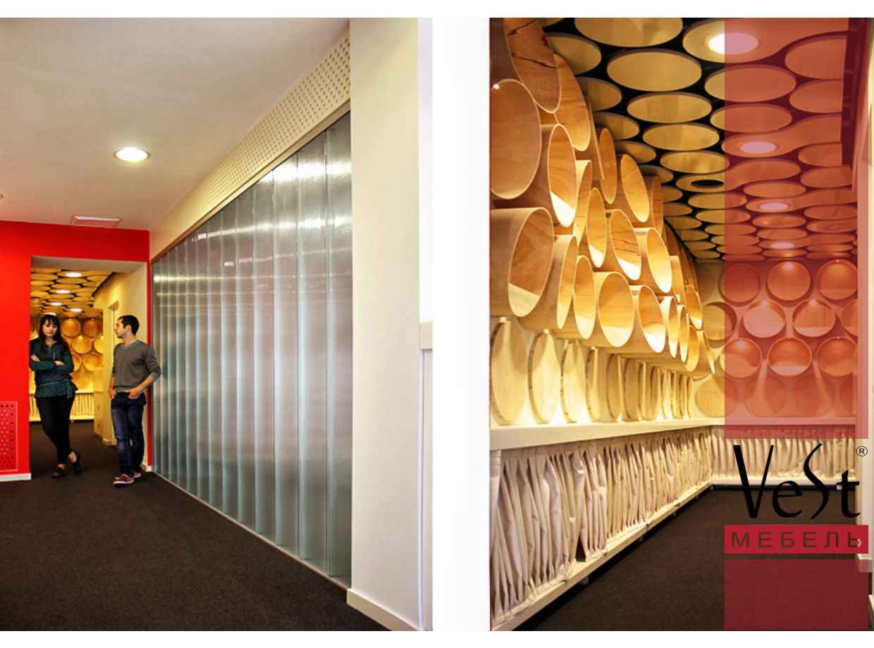 Проект является модернизацией входной группы существующего развлекательного музея, посвещенного теме производства шоколода и сладостей. Основной элемент - сувенирная лавка через которую организован выход из музея. Отличительное решение -паттерн из круглых элементов покрывающий потолок и стены, в определенных местах образующий цилиндрические полки для товаров с подсветкой. Нижний периметр обозначен линией закрытых шкафов для хранения запакованных товаров. В эту же линию визуально встроена кассовая стойка.